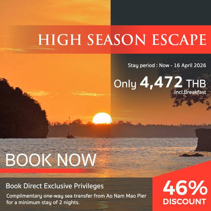 Complimentary one-way sea transfer from Ao Nam Mao Pier for a minimum stay of 2 nights.